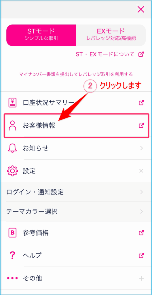 ① 設定が「ON]になっていることを確認します。 ピンク色になっていれば大丈夫です。