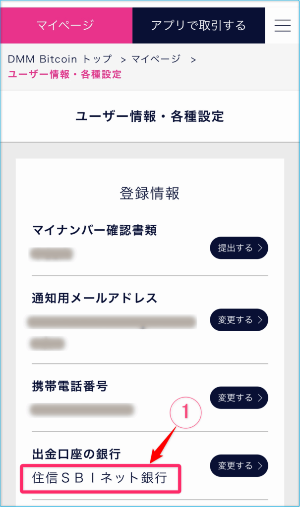 ① 「出金口座の銀行」があなたが登録しようとした銀行名が表示されていればOKです。