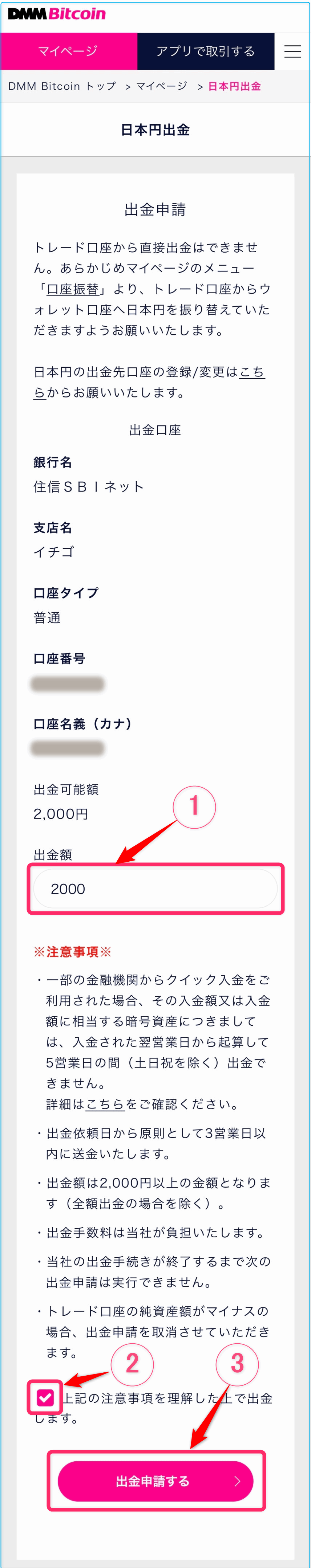 「DMMビットコイン」があなたが登録した金融機関に対して出金の指示を行うことを約束してくれたことになります。