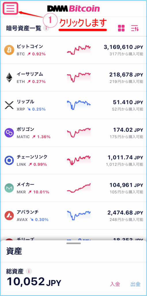 まずスマホの「DMMビットコイン」のアプリを開きます。
