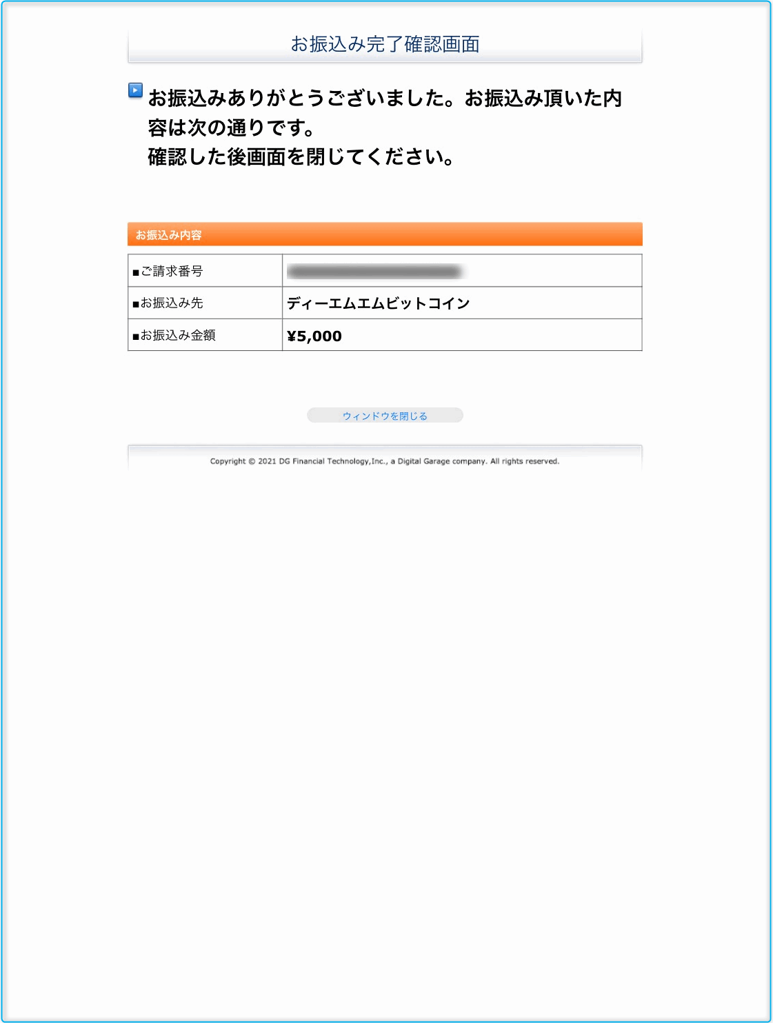 下の画面が出れば「振込手続き」は完了です。 いわゆる「入金が完了」したことになります。