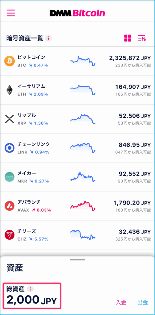 ウォレット口座への「入金」が完了しましたので、「仮想通貨の購入(取引)」が可能になりました。