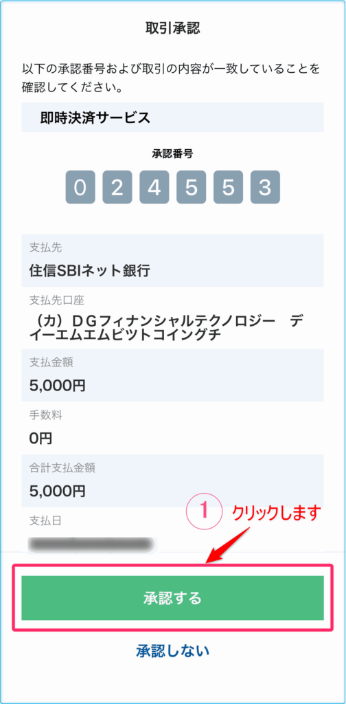 その他の入力内容も間違いなければ①の「承認する」をクリックします。