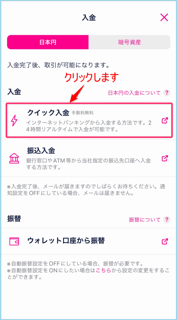 以上で日本円の「クイック入金」の解説は終了となします。